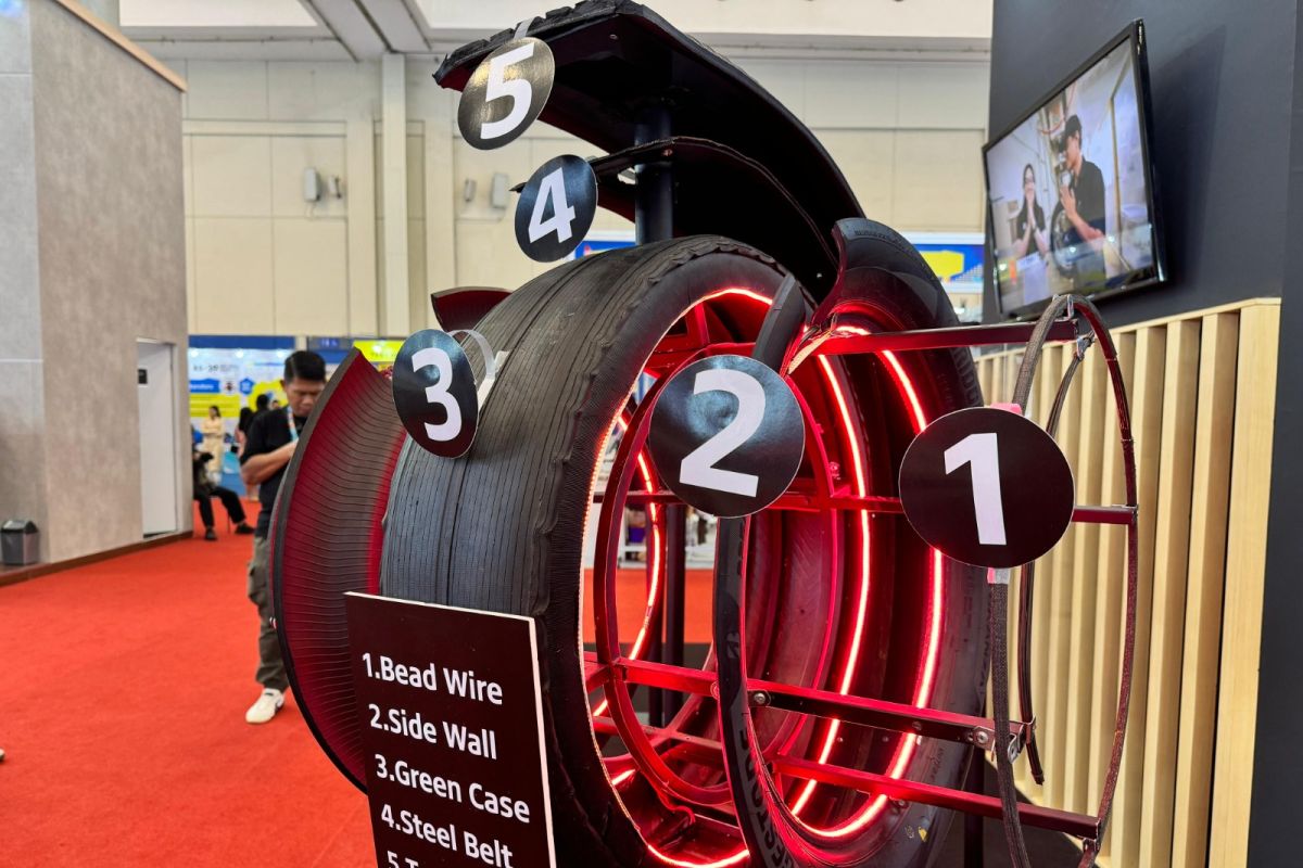 Salah satu aktivitas edukatif di booth Bridgestone adalah sudut “Tire Secrets Unlocked”, yang menampilkan “Tire Anatomy Experience” — sebuah modul interaktif yang memperlihatkan bagaimana sebuah ban dirancang dan bekerja.